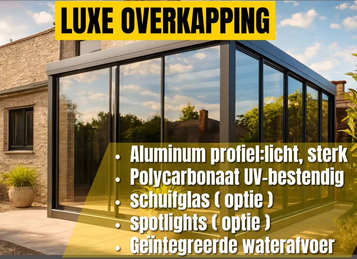 buitenruimte met hoogwaardige materialen, professionele plaatsing en geïntegreerde LED-verlichting die zorgt voor de perfecte sfeer, zowel overdag als ’s avonds. Vraag vandaag nog je gratis offerte aan en zet de eerste stap naar jouw nieuwe buitenruimte.